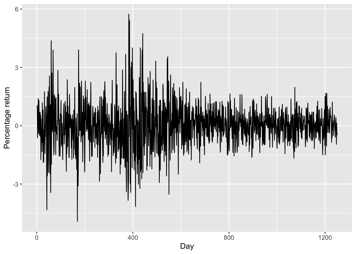 ylab("Percentage return") + xlab("Day")
